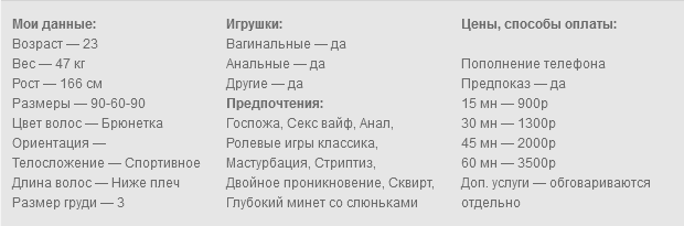 Я обожаю секс. Виртуальный, реальный и по телефону и перепискам… Ласки . Люблю делать минет мальчикам и куни, ани, девочкам. Обожаю ласки члена и киски, я бисексуалка. Шалю одна и с девушкой. Её анкета есть на сайте. И есть наша анкета пары ЖЖ. Заходите поласкаю, пообщаюсь , пошалю. Классика и ролевые. Переписки с фото и с видео. Продажа фото и видеою, секс рассказы и истории из личной сексуальной жизни и любые фантазии. У меня очень эротические и извращенные фантазии, Люблю нежный секс и жесткий. Могу сделать оценку члена, и провести ласковый контроль. Роли Госпожи мне тоже подходят, я универсальна и опытна. Моя подруга тоже, и очень она властная, могу с ней её вас познакомить, если ищите настоящую госпожу и секс вайф. Мамочку и учительницу и тд… В паре жж услуги, куни, ани, поцелуи с лицами, сквирт от куни на Скрыть