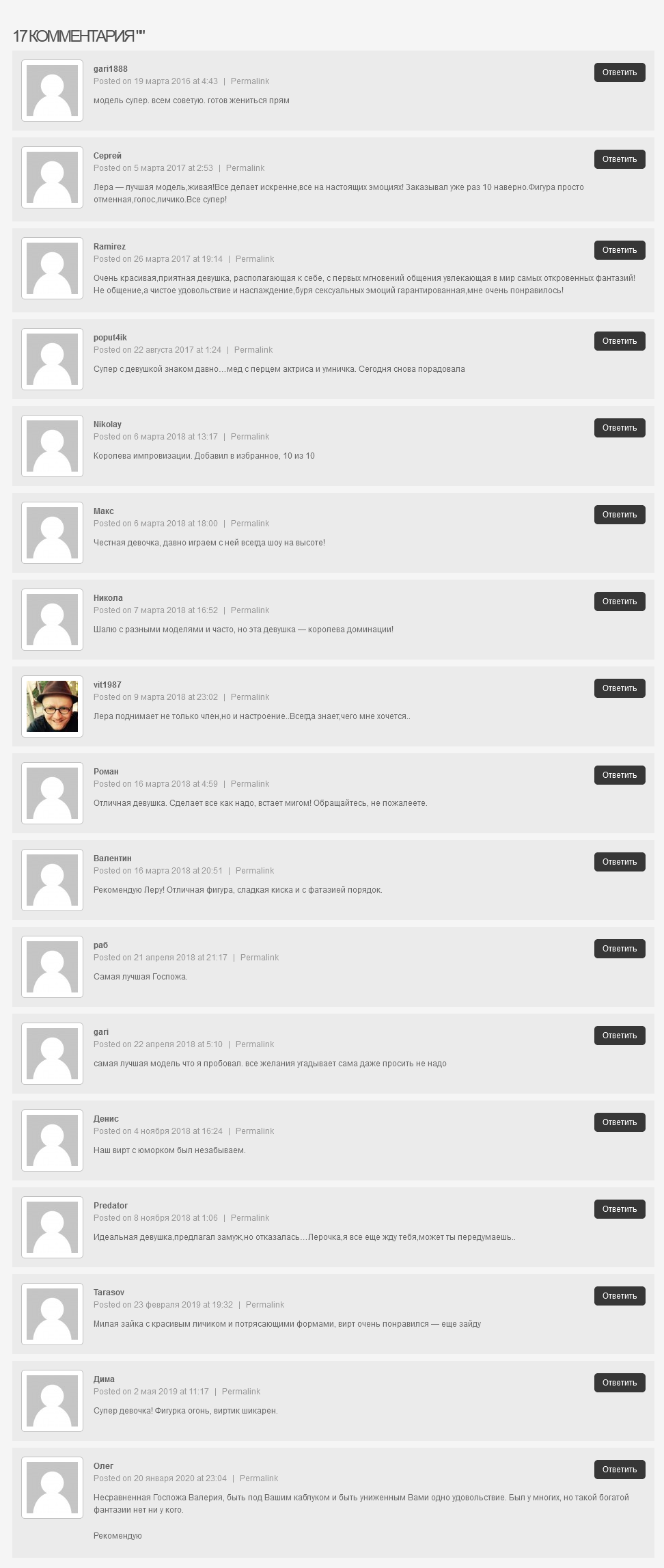 Приветик мальчики. Меня зовут Лера, я молодая и очень похотливая девушка которая очень возбуждается даже от самой мысли о сексе по telegram. В вирте со мной вы можете увидеть как я нежно лаская свою упругую грудь, лаская сосочки своим язычком что меня очень заводит. Так же вы увидите как я пальчиком или игрушкой по вашему желанию ласкаю свою влажную и ненасытную киску. Если же вы любитель анала могу для вас пальчиком поласкать упругую попку в разных и по вашему желанию с крупным планом так что бы смогли увидеть все прелести моего молодого тела. По дополнительной договоренности могу быть вашей госпожой, по словам благодарных клиентов у меня это получается очень хорошо и есть к этому не малый талант. Для особо изощренных могу предложить куколд и футфетиш, конечно по предварительной договоренности.