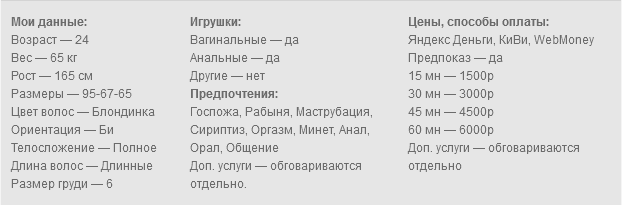 Приветик мой сладкий любовник. Я шальная, озорная Лера. Устрою тебе сногсшибательный вирт. Моя фантазия не имеет границ. Поиграем с тобой в разные игры, заведем друг друга и кончим вместе. У меня много секси костюмчиков и белья. Не стесняйся фантазировать смело, Я стану для тебя кем угодно: мамой, или любимой учительницей от которой ты сходил с ума, а хочешь проведу курс оздоровительной терапии в игре, где стану озабоченной медсестрой или выпорю тебя как следует. Есть игрушки, костюмы, белье, чулочки, трусики бюстики, разная обувь.